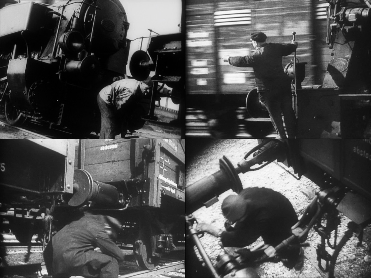 | Ein Bildmotiv, vier Filme: BERLIN. DIE SINFONIE DER GROSSTADT (l.o.), ENTHUSIASMUS (r.o.), PACIFIC 231 (l.u.), DAS STAHLTIER |